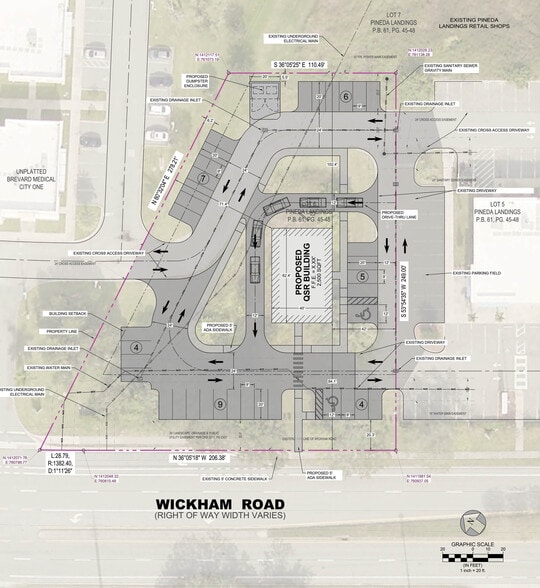 1+ acre outparcel available for sale, ground lease, or build-to-suit. Building up to 2,500 SF. Ideal for a quick casual restaurant like Jason’s Deli, Panera Bread, etc. Outparcel to the Fresh Market grocer anchored Pineda Landings shopping center. 28,500 VPD on Wickham Road with excellent visibility and access. Surrounded by national retailers (Aldi, McDonald’s, Starbucks, Zaxby’s, Vystar, Pacific Dental, The Fresh Market, etc.). Strong demographics and daytime population driving retail & service demand. Two conceptual site plans provided - flexible pad-ready development.