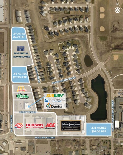 NE Corner Cliff Ave & Willow St - Devitt Farms/Harrisburg, SD 1.37 - 2.13 Acre Commercial Land Lots Offered at $998,638 - $2,070,170 CAD Per Lot in Harrisburg, SD 57032