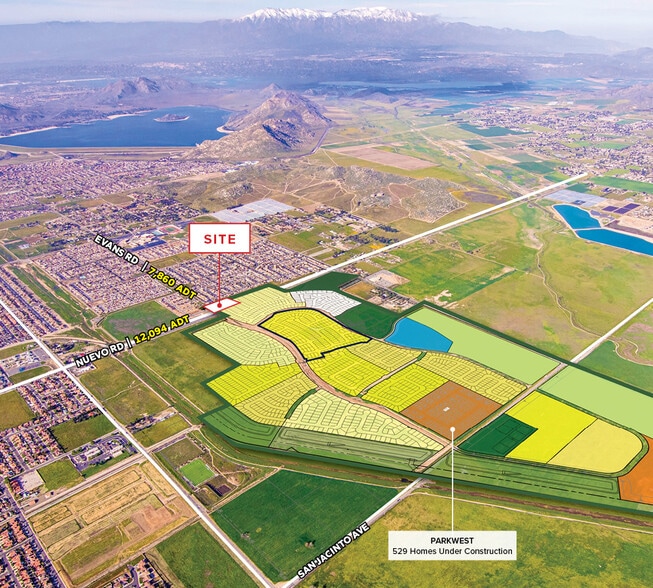 Retail pads are available for sale or lease at the northeast corner of Nuevo Road and Evans Road in Perris, California. This high-growth location features a lighted intersection with strong access, drive-thru opportunities, and frontage along Nuevo Road, which carries over 12,000 vehicles per day. The site is positioned on the A.M. side of the street and is surrounded by expanding residential communities, including hundreds of homes currently under construction. Nearby high schools, new housing developments, and future commercial projects further strengthen the daytime and commuter customer base. The property benefits from excellent regional connectivity, including proximity to I-215, and is designed to create synergy among neighboring retail and residential uses. These pads present a compelling opportunity for users seeking visibility, access, and long-term growth in a rapidly developing Inland Empire market.