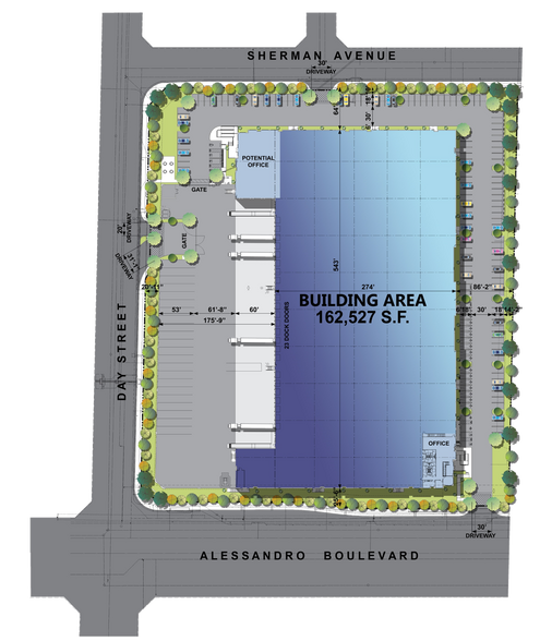 23 Dock Doors, 2 Ground Doors, 23 Trailer Stalls