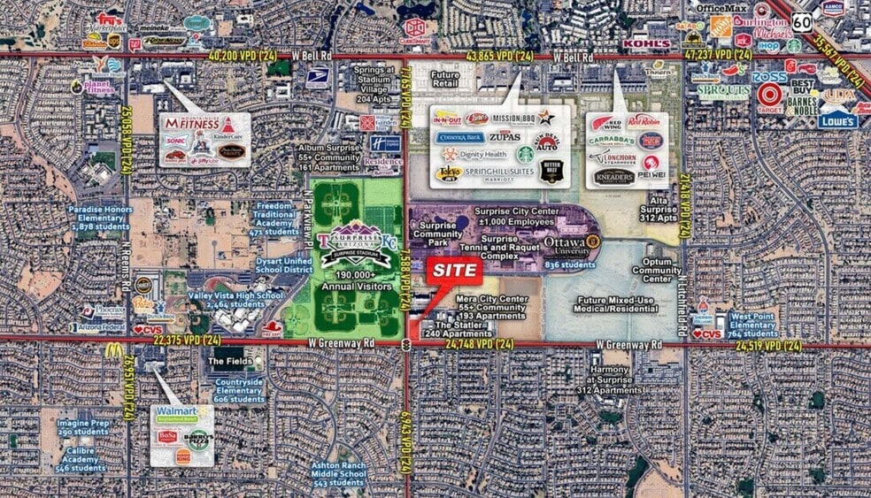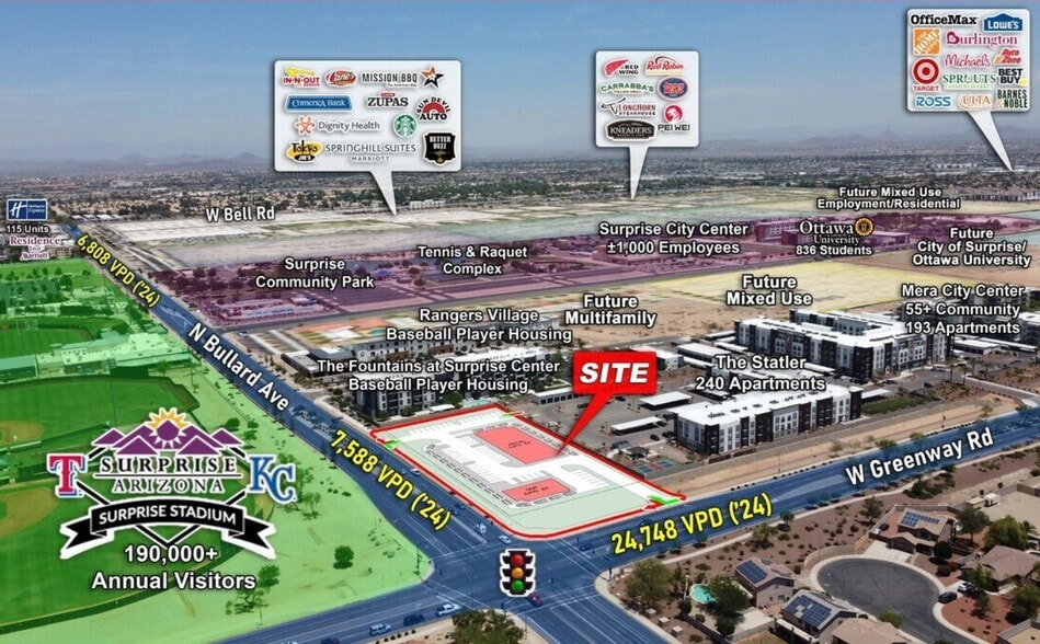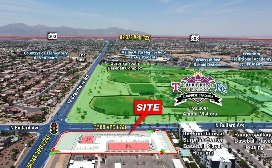 - Across from Surprise Stadium, home to the Texas Rangers and Kansas City Royals during Spring Training, with an average of 190,000+ visitors each year.