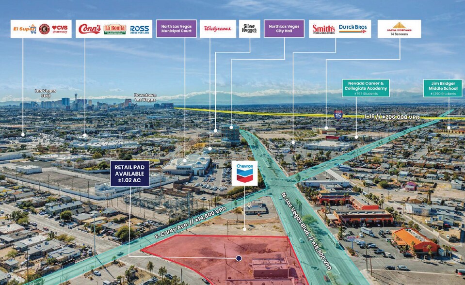 - Located at the signalized intersection of Las Vegas Blvd. and Carey Ave. seeing over +/-33,600 VPD