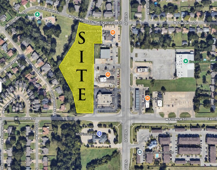 ±4.45 acres located northwest of the intersection of 111th (Florence) and Elm (161st East Avenue) in a mature residential and commercial intersection in Broken Arrow. Site is zoned Commercial General, subject to the Provisions of PUD-36 and Identified as Level 4 Commercial in the Broken Arrow Future Development Guide. Site is priced at $1,100,000 or $5.68/sf.