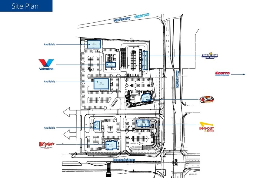 Buckeye Commons West is directly adjacent to Costco sporting frontage on Verrado Way with direct access to I-10. Verrado, a thriving masterplanned community of 8,000 residents and entitled for 14,000 homes on 8,800 acres, lies just north of the asset. Multiple ground lease PADs are available and under LOI sporting national retail tenants including Raising Cane's, Superstar Carwash, and more.