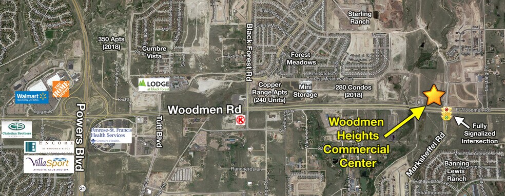 • Pad sites for sale and ground lease • Strong residential growth along corridor • Flexible PUD zoning allows for many uses • Excellent visibility & access to N Woodmen Rd • Marksheffel extension to Vollmer Rd planned • Over 53,000+ Vehicles per Day