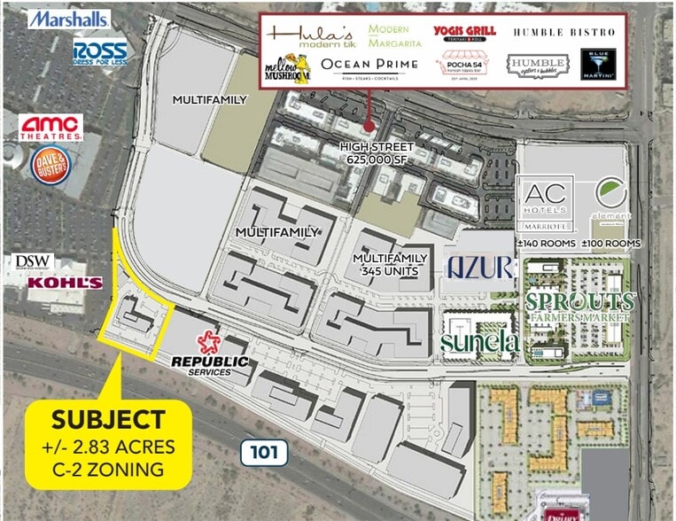 The property consists of approximately 2.83 acres located at the northwest quadrant of 56th Street and Loop 101 in Phoenix, Arizona. It is zoned C-2 and is fully entitled for commercial development. The site is adjacent to the CityNorth and Desert Ridge developments, which include retail, dining, entertainment, and hospitality uses. The property has direct visibility from Loop 101 and is accessible via City North Drive. Surrounding land uses include regional retail centers, multifamily residential, and major employers such as Mayo Clinic and American Express.