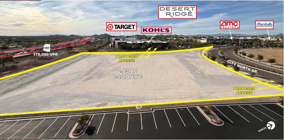 This ±2.83-acre parcel offers a rare opportunity to acquire a fully entitled, C-2 zoned site within the dynamic CityNorth and Desert Ridge corridor in Phoenix, Arizona. Positioned along Loop 101 with visibility to approximately 179,000 vehicles per day, the property benefits from exceptional regional connectivity and exposure. The site is fully improved and shovel-ready, making it an attractive option for developers and investors seeking to capitalize on one of the fastest-growing submarkets in the Phoenix metro area.
