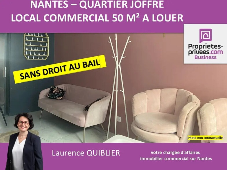 Laurence QUIBLIER vous propose à NANTES HYPER-CENTRE, à proximité immédiate de la Cathédrale dans la rue piétonne et animée du Maréchal Joffre, ce local commercial de 60 m² à louer. Il dispose d'une surface de premier jour de plus de 30 m², un linéaire vitrine de 5 m. Equipé d'une kitchenette, , ce local est carrelé et décoré avec soin, il dispose également de plusieurs surfaces annexes pour du stockage ou en show-room. Accès possible par la cour intérieure. Fort passage clients dans cette rue nouvellement piétonnisée, nombreuses possibilités d'exploitation, toutes activités commerciales hors restauration nécessitant une extraction. Nouveau bail à prévoir. Loyer 1800 euros HT par mois. PAS DE DROIT AU BAIL. Honoraires locataire 4500 euros HT en plus. Pour visiter et vous accompagner dans votre projet contactez Laurence QUIBLIER au 06..81.78.46.21 ou par courriel à l.quiblier@proprietes-privees.com. Cette présente annonce a été rédigée sous la responsabilité éditoriale de Laurence QUIBLIER agissant en tant que Chargée d'affaires indépendante auprès de la SAS PROPRIETES PRIVEES. Mandat réf : 432610. En tant que professionnelle, je vous conseille et sécurise votre projet d'installation. SAS PROPRIETES PRIVEES - ZAC du chêne ferré - 44 allée des cinq continents 44120 VERTOU, Carte professionnelle CPI 4401 2016 000 010 388 CCI Nantes-Saint Nazaire. RCS NANTES 487 624 777 Laurence QUIBLIER (EI) Agent Commercial - Numéro RSAC : - .