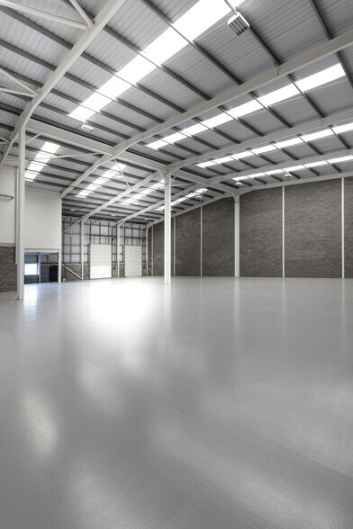 This fully refurbished industrial unit offers a modern and secure working environment, ideal for a range of operational needs. It features two level access loading doors, a clear internal eaves height of 8 metres, and a robust 138 kVA power supply supported by a 3-phase electricity connection. The property includes first-floor office space and benefits from comprehensive 24-hour on-site security, including CCTV and a gatehouse. Sustainability is a key feature, with maximum photovoltaic (PV) coverage of up to 80 KWP, enhancing energy efficiency and reducing operational costs.