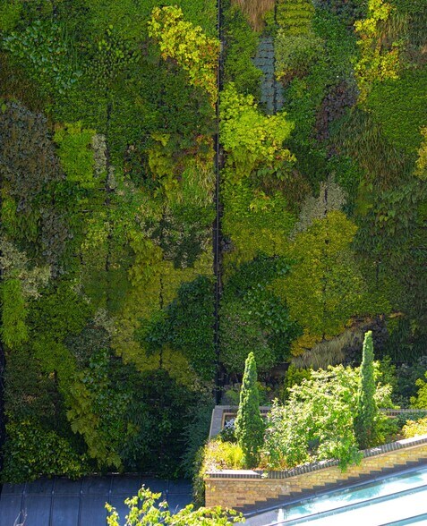 Cloisters provides a campus-style environment set back from the vibrant bustle of Old Street. There are spacious communal roof terraces available to occupiers, and a green living wall enhancing the calming environment. The newly fitted out workspaces designed by Daytrip, feature wooden floors and earthy tones to create a modern yet calming work environment. The communal courtyard is set against the backdrop of a living green wall and the sounds of the central water feature.