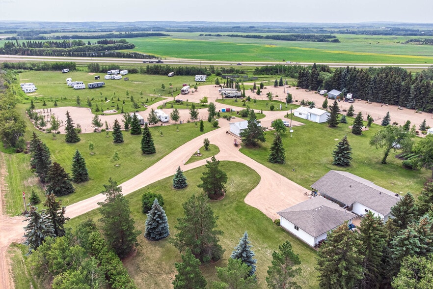 There is no better opportunity in the marketplace for an owner operator or an investor to set themselves with terrific cash flow, and a great potential for future growth; purchase this well- established year-round campground, ideally situated midway between Edmonton and Saskatoon along the TransCanada Hwy 16. This campsite is only a 5 minute drive from the City of Lloydminster, a growing community with abundant oilfield related expansion, farming and an ever-increasing trading area which is transforming the community in to a retain hub. This campground continues to benefit from both long- and short-term contract employee stays as well those travelling and stopping in as they chase adventure down the highway. This campground is zoned commercial, and the property encompasses approximately 16 acres of land with some of the most well thought out low maintenance systems of roads and services as you will ever find in a competing campground property- no detail is left to chance, and the property has been set up for a seamless one-person operation. This campground serves daily, monthly or annual customers and is an easy commute for people working in the surrounding community. There are fixed structures included in the sale which includes a campground shower house/shop building, a campground community building with attached heated storage area and a pole shed cold storage building. The campground features a total of 96 campsites including- The year round use campsites with full serviced water and sewer connections and electric power meters at each site and including a total of 6 drive through 15/30/50-amp sites with full water/sewer, 12 back in 15/30/ 50-amp sites with full water/sewer, and 27 back in 15/30-amp sites with full water and sewer. Additional unmetered sites designed for summer and/or overflow only use include 11 full15/30-amp sites full water/sewer and 40 plus spots available with water and temporary power connections. In addition, there is RV storage areas licensed for up to 200 units and a newly developed graveled area for additional parking with potential for large equipment truck/trailer, group camping, overflow and similar uses. This campground was designed from initial concept to be a fully functioning and efficient operation- great opportunity!! Note: Sale will be subject to completion of final subdivision- upon final subdivision a new legal description will be created. Final subdivision is estimated to be completed by the end of December 2025. Also Note: adjacent acreage home/garage on 10 acres, and additional farmland with approx. 49 acres can also be purchase at an additional cost to the buyer. MLS # A2270825