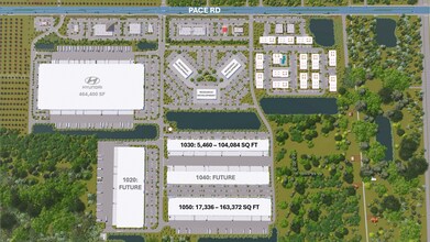 The Ruthvens at Pace Innovation Center is a newly developed campus featuring two state-of-the-art industrial facilities ranging from 104,084 to 163,370 square feet. Located in Central Florida along the I-4 corridor, the campus offers up to 32-foot clear heights, more than 100 loading docks, and additional trailer parking, making it an ideal solution for businesses with research, manufacturing, and warehousing needs. At 1030 Pace Center Drive, the building features 26-foot by 105-foot bays starting at 5,460 square feet, expandable up to 43,852 square feet. 1050 Pace Center Drive offers 26-foot by 165-foot bays for lease, beginning at a four-bay minimum of 17,335 square feet. Pit levelers are installed at every fourth door. Both buildings have 10-foot-by-10-foot dock-high doors, 12-foot-by-14-foot ramp-access doors, ESFR sprinkler systems, 277/480-volt three-phase power, and 120/208-volt three-phase power. The Ruthvens at Pace Innovation Center offers excellent accessibility, multiple ingress and egress points, wide truck courts, and a location just 0.6 miles to the Polk Parkway and 2.2 miles to I-4. Centrally positioned between Tampa (40 miles) and Orlando (27 miles), this campus is strategically situated for distribution, with over 11 million consumers within reach. Planned future development will continue to grow this premier industrial park into a key commercial hub for businesses seeking cutting-edge logistics space in Central Florida.