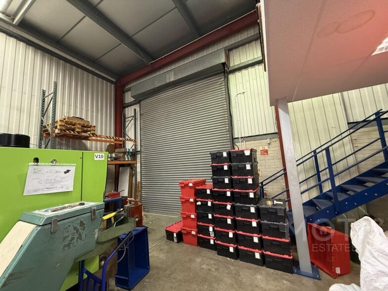 - The warehouse has a mezzanine which is used for storage and an office. The office has no carpet but benefits from a suspended ceiling with LED