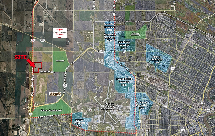 Future Industrial Development Land in CentrePort Canada 106.34 Acre parcel of vacant land for future industrial development with 2,650 ft frontage on Perimeter Highway. 7.7-acre yard site with shelter belt and 2 residences and outbuildings. Situated in CentrePort Canada - Canada's only inland port - offering companies access to tri-model transportation and a Foreign Trade Zone. CentrePort Canada is the fastest growing industrial area in Manitoba. The site is near major cargo operations including some of Canada's largest trucking operations and Winnipeg's James Armstrong Richardson International Airport, a 24-hour operating airport. With Direct access to Winnipeg via Selkirk Avenue, Perimeter Highway, and Highway 75 to the U.S. Currently zoned Agricultural, with a designated I2 - Industrial Zoning.