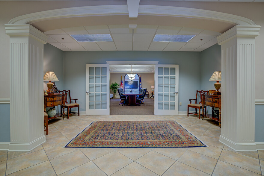 This suite offers a versatile layout with six private offices, a large conference room, and a central vestibule that can serve as a reception or waiting area. It also includes a break room with counter space and a sink, along with a conveniently located restroom. The combination of private rooms and open common space makes the layout flexible, allowing it to function well as either traditional office space or a medical suite with exam rooms and administrative areas.