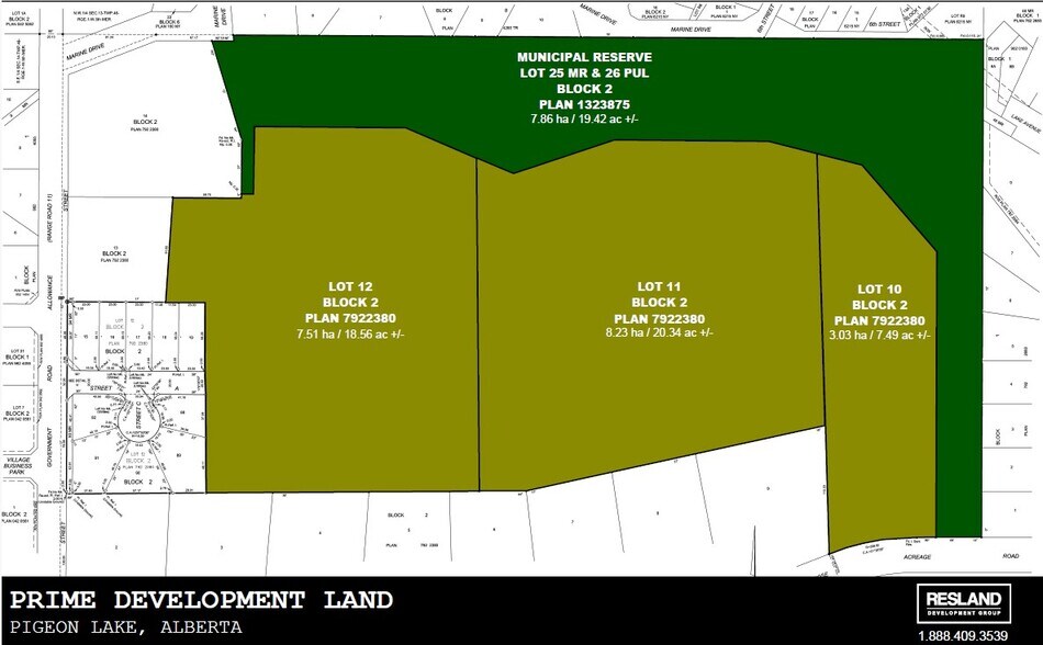 Prime Development Land in Pigeon Lake, Alberta. Three titles: Lot 12 Block 2: 18.56 acres +/- Lot 11 Block 2: 20.34 acres +/- Lot 10 Block 2: 7.49 acres +/-