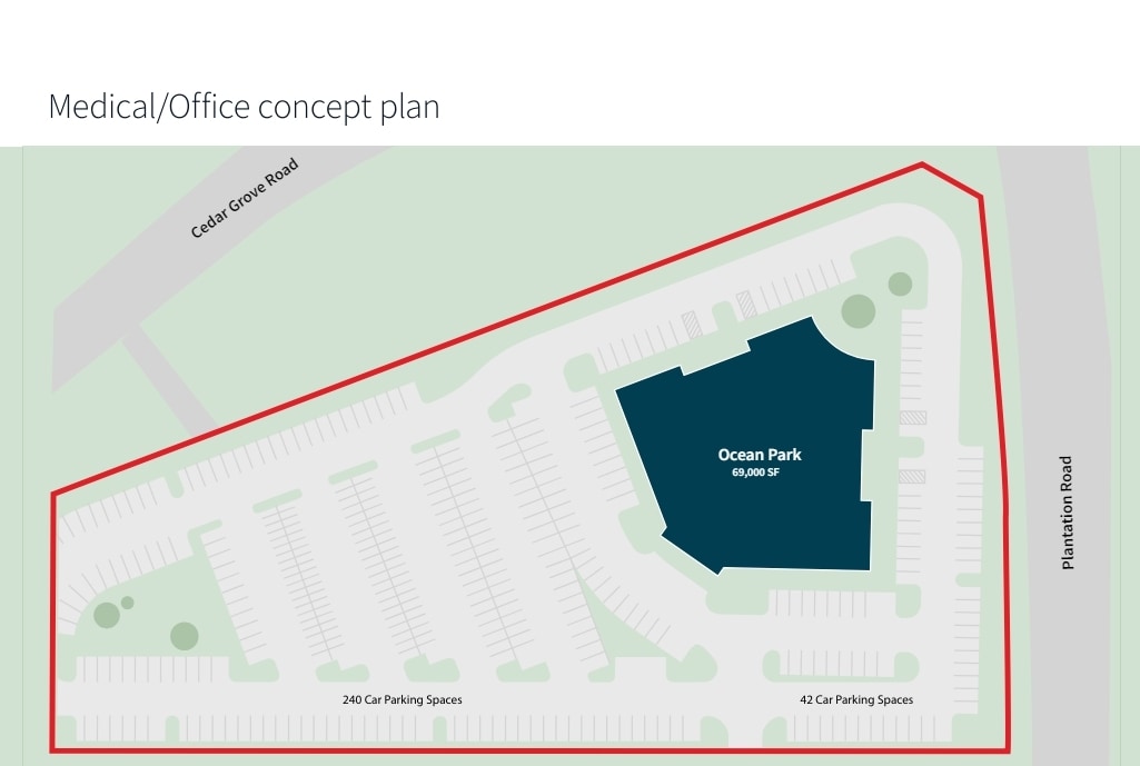 Ocean Park offers an ideal retail and medical development opportunity to serve the fast-growing Coastal Delaware market. Situated on the corner of Alternate Rt. 1/Plantations Road and Cedar Road in Rehoboth Beach, a half mile from Route 1, Ocean Parks boasts unbeatable access to the soaring residential and seasonal population in the region. Ocean Park will benefit from DelDot's transportation infrastructure project, which will divert traffic off of Route 1 on Alternate Route 1/Plantations Road to significantly increase vehicle counts -scheduled for completion in 2025. Zoned B-1 at a corner traffic light with two (2) approved entrances as well as additional approvals in hand, Ocean Park represents a commercial development opportunity unlike any other in the region.