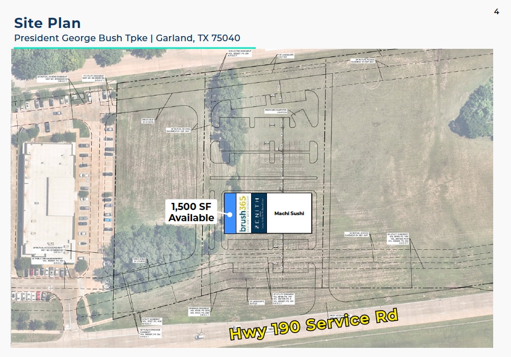Strong national co-tenancy to drive surrounding foot traffic. Positioned fronting President George-Bush Hwy, direct visibility to 100,000 cars per day The population within a 1-mile radius increased 32% from 2010 to 2020 Warm Gray Shell Delivery • Co-Tenants: Brush 365, Zenith Wellness Clinic, and Machi Sushi