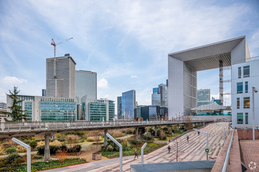 La Grande Arche constitue un symbole majeur du quartier d’affaires de La Défense, offrant un positionnement exceptionnel sur l’axe historique reliant Paris à l’Ouest métropolitain. Le bâtiment propose des espaces entièrement modernisés, avec un socle serviciel totalement rénové en 2023 comprenant auditorium, business center, hall d’accueil, cafétéria et espaces de réunion. La localisation garantit une accessibilité incomparable grâce à la proximité immédiate du pôle multimodal La Défense, desservi par les lignes de transport en commun majeures : métro, RER, tramway et lignes Transilien. L’environnement urbain offre une gamme très large de services : commerces, restauration, sport, banques et infrastructures du quotidien. Les utilisateurs bénéficient également d’un accès privatif au rooftop et à son restaurant panoramique, un atout rare dans le secteur. L’immeuble répond aux standards IGH et propose une sécurité renforcée ainsi que des prestations techniques de haut niveau.