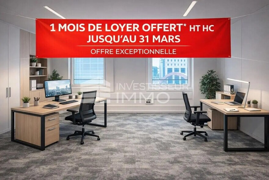 OFFRE DE LANCEMENT - 1 MOIS DE LOYER HT HC OFFERT JUSQU'AU 31 MARS 2026- OPPORTUNITE -PUTEAUX 92800- À LOUER EN EXCLUSIVITÉ EN PLEIN CENTRE VILLE DE PUTEAUX - LA DEFENSE- 2 MINUTES DU METRO LIGNE 1 BUREAUX DE 41,80 m² - ETAGE ELEVE - CLIMATISATION REVERSIBLE - RIE - STATIONNEMENT PARKING EN SOUS-SOL POSSIBLE Contact : 06.99.82.37.38 INVESTISSEUR IMMO, spécialiste de l'immobilier d'entreprise, propose en exclusivité à Puteaux - La Défense, derrière le centre commercial des 4 Temps, un bureau entièrement rénové à louer en étage élevé de 41,80 m², composé d'une salle en open space et d'un bureau de direction, emplacements de parking en sous-sol en sus. RIE neuf de qualité, climatisation réversible, interphone, Accueil, sécurité 24 h/24 7 j/7. Surfaces disponibles : 41,80 m², Les charges comprennent syndic, entretien de l'immeuble, ascenseur, sécurité incendie, taxe foncière, taxe bureau, électricité, air chaud et rafraîchissant, RIE, accueil ) LOYER AN / HC / HT : 17 760 euros CHARGES / AN : 10 320 euros LOYER AN / CC / HT : 28 080 euros / AN LOYER MOIS / CC / HT : 2 380 euros / MOIS Honoraires : 1 mois de loyer C.C. charge preneur. Contact : 06.99.82.37.38 Possibilité d'aménagements flexibles : Bureau avec Open Space, salle de réunion.. Ces bureaux sont idéaux pour les sociétés de co-working, co-living, centres de formation, artisans, les sociétés de services, la comptabilité, l'informatique, les showrooms, le stockage léger, les entreprises de transport, les sièges sociaux, la création d'entreprises, les autoentrepreneurs, tous types de commerces, les agences d'intérim, les cabinets et les salles ERP. Ce bureau administratif est également idéal pour les commerçants, et les entreprises du BTP. Possibilité d'aménager des espaces pour un centre de formation, des séminaires ou des salles de réunion. Ce business center est l'un des plus dynamiques des Hauts-de-Seine (92). À proximité : Salles de sport : Basic-Fit, Fitness Park, Keep Cool. Restaurants : Divers restaurants et cafés dans le centre-ville de Puteaux. Transports : Tramway, bus, à proximité immédiate de la D985, D3, D3E, D7. Commerces : Supermarchés, boulangeries, pharmacies, etc. Villes proches : PARIS (75), PARIS (75001), PARIS (75002), PARIS ( 75003), PARIS (75004), PARIS (75005), PARIS (75006), PARIS (75007), PARIS (75008), PARIS (75009), PARIS (75010), PARIS (75011), PARIS (75012), PARIS (75013), PARIS (75014), PARIS (75015), PARIS (75016), PARIS (75017), PARIS (75018), PARIS (75019), PARIS (75020) COLOMBES ( 92700 ), COURBEVOIE ( 92400 ), LEVALLOIS-PERRET (92300), ASNIERES-SUR-SEINE ( 92600 ) ,PUTEAUX ( 92800 ), NEUILLY-SUR-SEINE ( 92200), VILLENEUVE-LA-GARENNE ( 92390 ), NANTERRE( 92000 ), RUEIL-MALMAISON ( 92500 ), CHATOU ( 78400 ),ANTONY (92160), MASSY (91300), CHÂTENAY-MALABRY (92290), BOURG-LA-REINE (92340), FONTENAY-AUX-ROSES (92260), Cachan ( 92230 ), Châtillon ( 92320 ), Arcueil ( 94110 ), Montrouge ( 92120 ), Fontenay-aux-Roses ( 92260 ), Malakoff ( 92240 ), Sceaux ( 92330 ), L'Haÿ-les-Roses ( 94240 ), Gentilly ( 94250 ) Investisseur IMMO est un cabinet d'administration de biens, spécialisé dans la gestion locative de bureaux, entrepôts, commerces, ateliers, logistique, immeubles, terrains, et sites industriels. Nous vous conseillons pour investir dans l'immobilier rentable et réaliser un investissement locatif réussi. ACHAT/VENTE/LOCATION Investisseur IMMO, c'est plus de 400 annonces immobilières dans notre portefeuille de biens professionnels. Ascenseur Gardiennage 24h/24 Télésurveillance Hôtesse d'accueil Contrôle d'accès Hall d'accueil PC de sécurité Contrôle d'accès par badge Issues de secours Climatisation Grande hauteur sous-plafond Entrée indépendante Double accès Escalier intérieur Cloisons amovibles Faux plafond Sanitaires privatifs Accès poids lourds de plain-pied Parking Quai Porte sectionnale électrique Situation/Transports : Bus Berthelot - Carré Vert (159, EOLIEN), Les Rosiers (163) Métro La Défense (Grande Arche) (1) RER La Défense (E, A) A 14, A 86, N 1014 (Entrée), A 14 (Sortie La Défense centre), A 86, N 1014 (Sortie) Rocade Porte Dauphine (Périphérique Paris) Borne de recharge Puteaux - Q-Park La Défense - Westfield Les 4 Temps P1/P2 (Bornes de recharge) Dépot de garantie : A déterminer