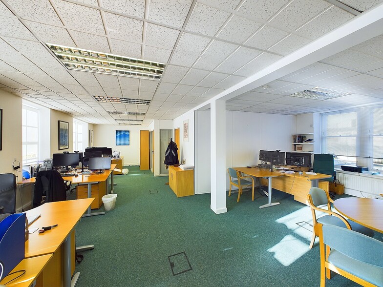 The office is arranged over the lower ground, ground & first floors of a stone-built property. The ground and first floors are accessed via the front entrance off Quality Street. Internally, the modern office provides bright open plan office space with meeting rooms, a board room, a tea preparation area as well as male and female WC facilities on each floor. The subjects benefit from a generous car parking allocation of 4 marked spaces (2 spaces per floor) as well as off-street parking nearby.