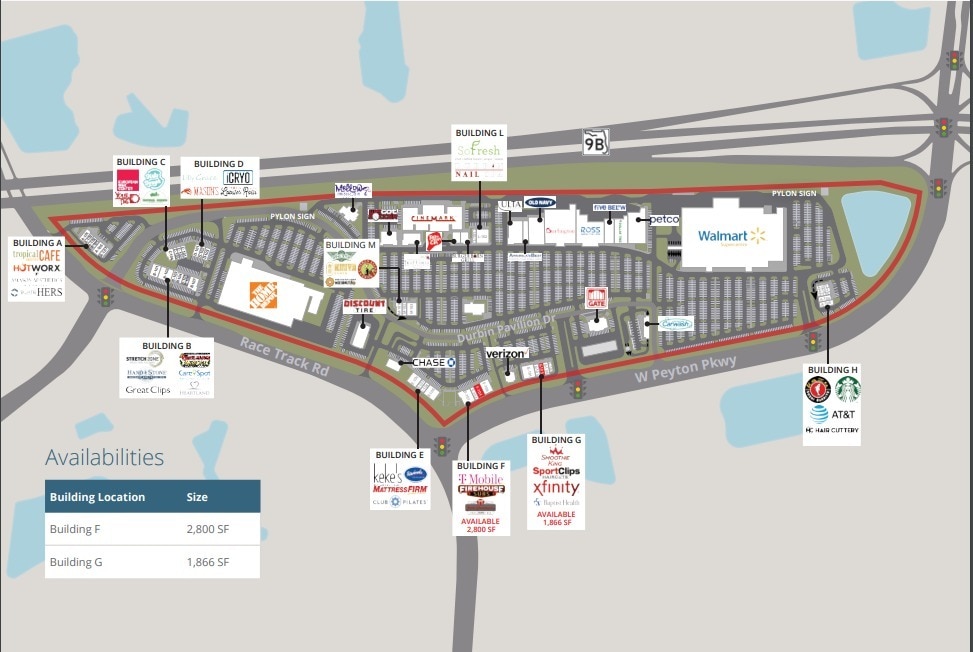 - Signalized access points on Race Track Rd and West Peyton Parkway.