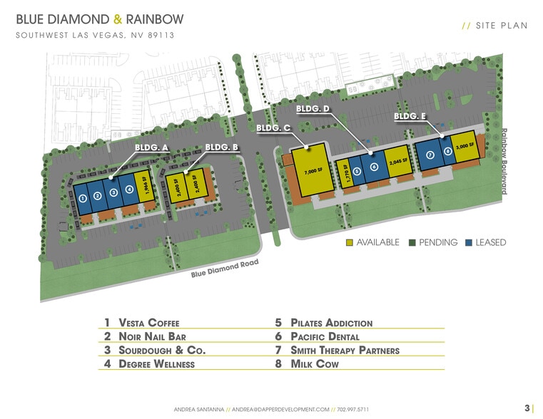 | Min. Divisible | 1,770 SF | Frontage | 970’ on Blue Diamond |