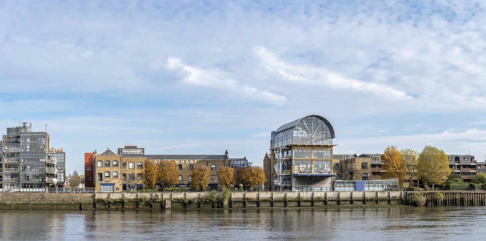 Office accommodation at Thames Wharf Studios is arranged in 4 separate buildings that surround the main courtyard. Situated on the bank of the River Thames at Hammersmith, Thames Wharf Studios on Rainville Road is accessed from the A219 Fulham Palace Road. It is also a short walk from Hammersmith Bridge and Hammersmith Embankment along the Thames Path. Hammersmith Broadway (Piccadilly, District, Hammersmith and City and Circle Lines) is a 10 minute walk. The A219 Fulham Palace Road also links with the A4/M4 at Hammersmith Broadway for connections to the west end, Heathrow and the west. The renowned River Café Restaurant which opened in 1987 occupies the ground floor of the scheme.