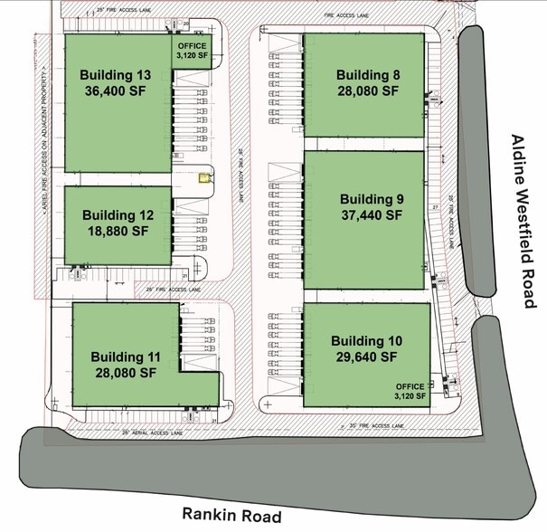 - Six freestanding buildings ranging from ±18,800 SF to ±37,440 SF delivering Q1 2027.