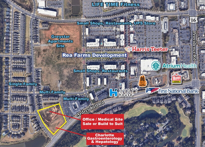 Owner can develop up to 26,400 SF building on outparcel off of Red Rust Lane and Ardrey Kell Rd.