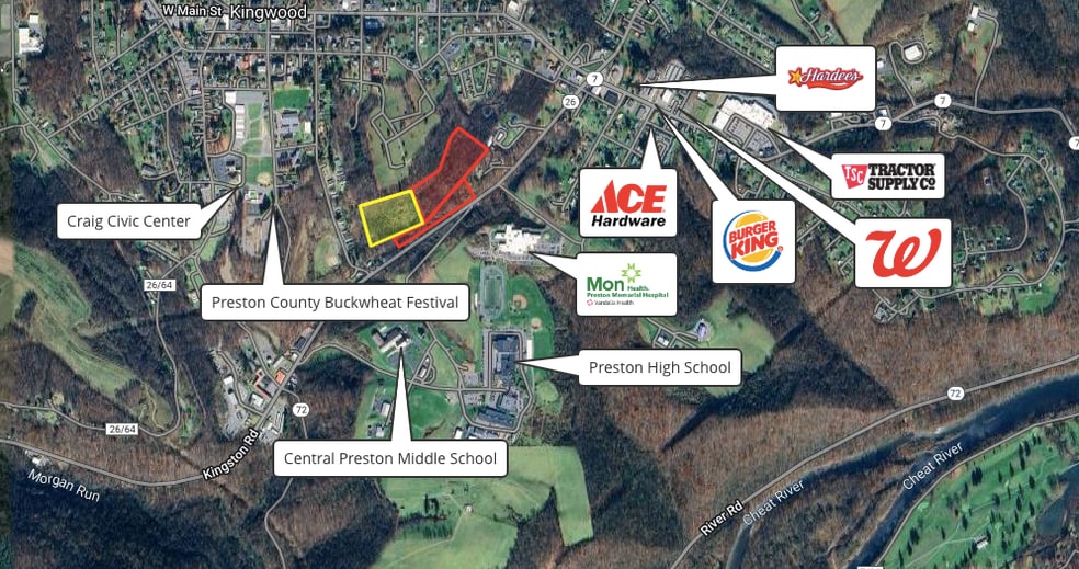 Located adjacent to the Highschool and Mon Health Preston Memorial Hospital.