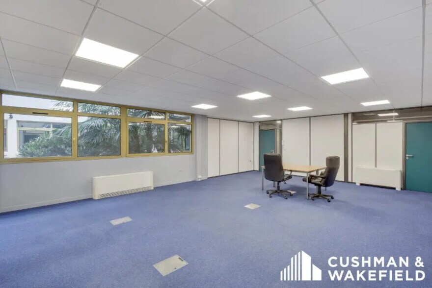 Cushman & Wakefield vous propose des bureaux à louer à Rueil Malmaison. Surfaces flexibles, vous pouver louer des bureaux à partir de 10 m². Nous vous proposons de découvrir des espaces de bureaux flexibles répartis sur 3 niveaux situés à proximité du RER A (Rueil Malmaison) pour aisément rejoindre la Défense, ou Paris. Profitez d'espaces de bureaux lumineux donnant sur une rue calme. Vous bénéficiez d'un patio et la possibilité de louer une salle de réunion. Places de parking disponibles - Archivage et stockage également disponibles en infrastructure de l'immeuble. Vous rejoindrez une structure familiale. Services de courrier et de conciergerie également disponible. Si ces bureaux à louer vous intéressent et si vous souhaitez plus d'informations, contactez-moi dès aujourd'hui pour organiser une visite et concrétiser votre projet de location de votre futur espace de travail. Hall avec salon d'attente Contrôle d'accès sécurisé par interphone et badge nominatif Vidésurveillance Patio/jardin et cafétéria Fibre optique disponible Bureaux en parfait état Faux-plafond Cloisons modulables Pré-câblage Chauffage et climatisation par système intégré Surface RDC : 23,6 m²