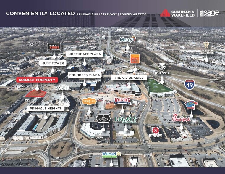 - Close to Hotel Avail, Pinnacle Hills Promenade, the Embassy Suites, Ruth’s Chris, Topgolf, Walmart Amp, and many restaurant and retail establishments