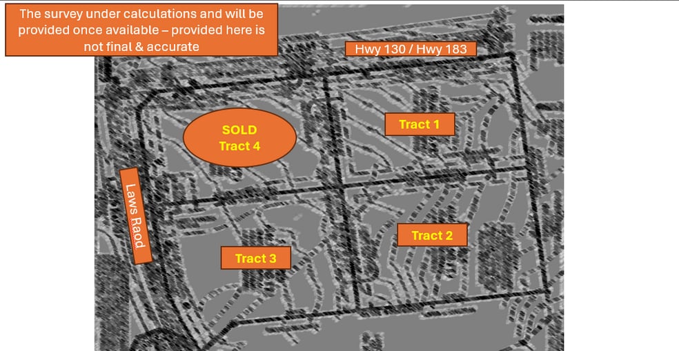 Location google pin drop: https://maps.app.goo.gl/dcD4fj8D5Q9M3vkB6 3 to 12.50 Acres of commercial possible land for sale. 4 Parcels as shown on the picture. Tract 1: 3.00 acres Tract 2: 3.32 acres Tract 3: 3.12 acres Tract 4: 3.24 acres corner lot under contract. Located in growing Mustang Ridge city with multiple subdivisions in the process of developing and with future more to come. Easy access to Hwy 183 / Hwy 130. Corner lot of Law Road and Hwy 183 / Hwy 130 with highway visibility. The seller gave the wastewater easement for future water company. Seller advised the buyer and their representatives to consult the city or utility providers as part of their due diligence for capacity and connectivity. Commercial possibilities for different commercial usages, with certain deed restrictions of objectionable usages, architectural standards and usages restrictions. The sellers will provide restrictions and will be updated with in 3-4 weeks of contract.