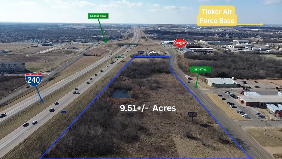 Positioned at the intersection of SE 74th (I-240 Service Road) & east of Sooner Rd