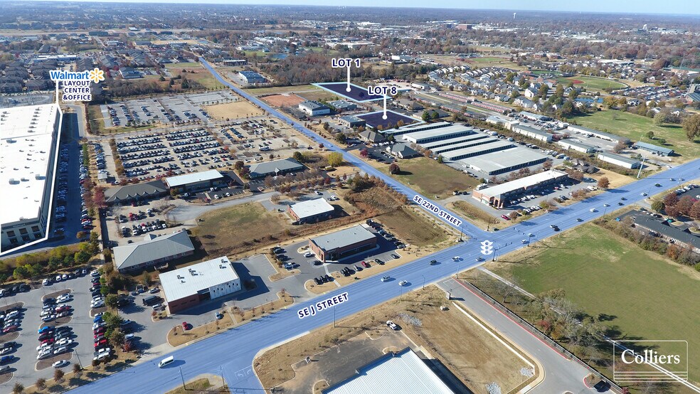 Well-positioned land located on the J Street corridor. Minutes from the 350-acre Walmart Home Office campus and adjacent to the 90,000-square-foot Walmart office building and Walmart Layout Center. Uses could include office, retail and multifamily developments. New traffic light at the intersection of SE J Street and 22nd Street provides an opportunity for hard corner retail or office uses.