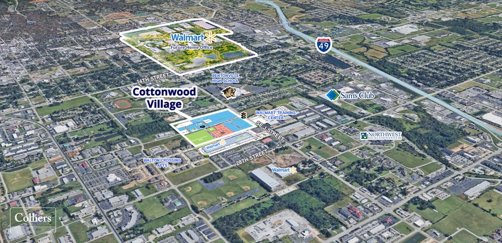Located off of J Street in Bentonville, Arkansas. Cottonwood Village is approximately 1 mile from I-540 and 2 miles from the Wal-Mart Home Office.
