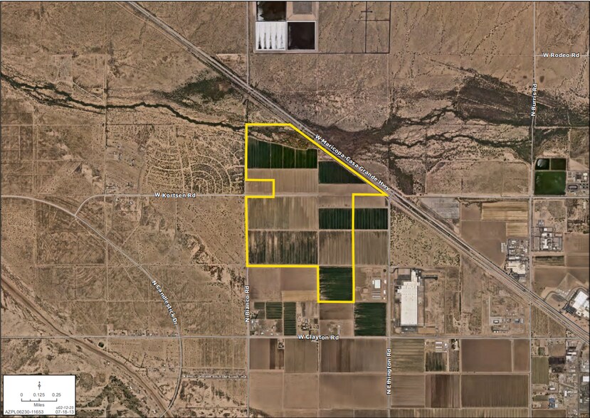This property is located at the northeast corner of the southeast corner of Bianco Road and Kortsen Road in Casa Grande, Arizona. It has good access, located between the City of Casa Grande and the City of Maricopa with almost 1 mile of frontage on Highway 238.