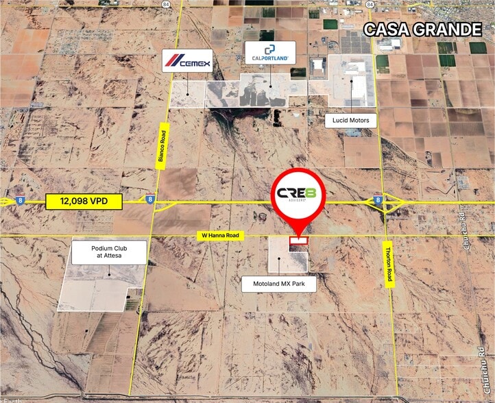 20.14 Acres available located in Casa Grande just south of I-8. Located at the southeast corner of Burris Road & Hanna Road and near the full diamond interchange on I-8. Situated next to Motoland MX Park, call for pricing and additional details.