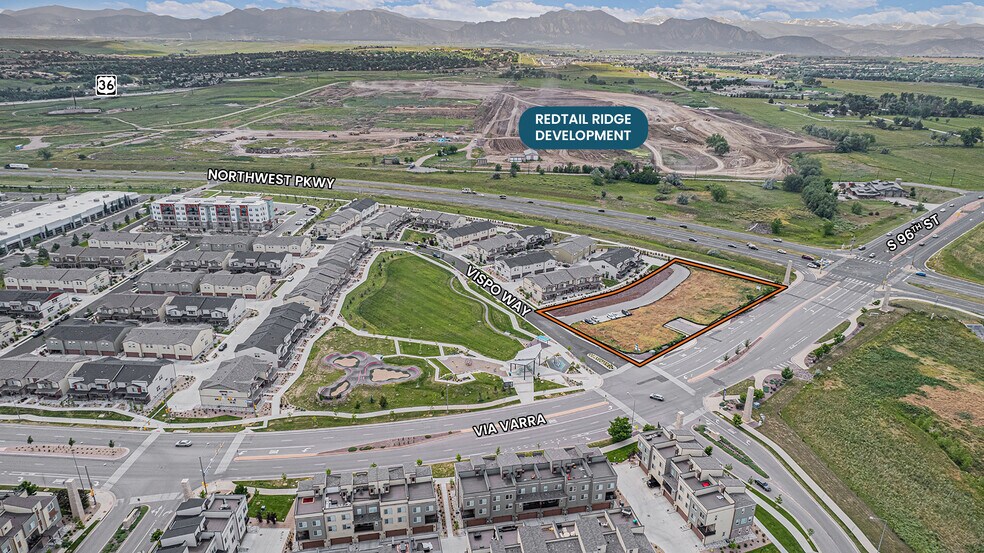 Position your business for success in one of the most dynamic growth corridors in Broomfield, Colorado. This highly visible retail site offers an exceptional ground lease or sale opportunity ideal for a wide range of uses, including: Full-Service Restaurants, Quick Service Restaurants, Banks & Financial Institutions, General Retail, Daycare Centers. The property is adjacent to the future Redtail Ridge development, a transformative 2.15 million RSF mixed-use campus featuring life science, biomanufacturing, office, and industrial facilities. Redtail Ridge is poised to attract thousands of employees and visitors, further driving demand for retail, dining, childcare, and financial services in the immediate area.