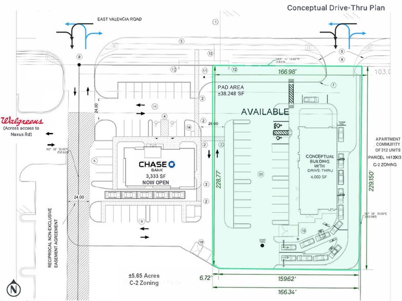 ±38,248 SF Drive-thru Pad available for fast food, financials, coffee, etc. Zoned C-2, City of Tucson.