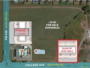 - Prime Location: High traffic area at College Ave & FM 548 with 19,763 VPD.