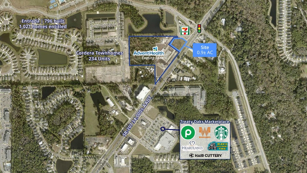0.9± acre parcel available for ground lease on rapidly developing SR 207 corridor of St. Augustine