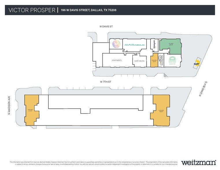 Situated at the NWC & SWC of Zang and Davis, Victor Prosper includes over 21,500 SF of ground-floor retail space well-positioned to the entrance of the Bishop Arts district. The 216-unit apartment development is adjacent to the new Dallas Streetcar stop and within walking distance to a unique blend of award-winning restaurants, cafes, eclectic boutiques, art galleries and residential developments. Victor Prosper offers a rare combination of community, culture, and location! Victor Prosper Phase II will bring a mixed-use destination into the heart of the historic Bishop Arts District. The new phase will add 210 apartment units in a mid-rise tower with retail at street level. The retail incorporates 4,304 square feet along Madison and 5,586 square feet along Zang.