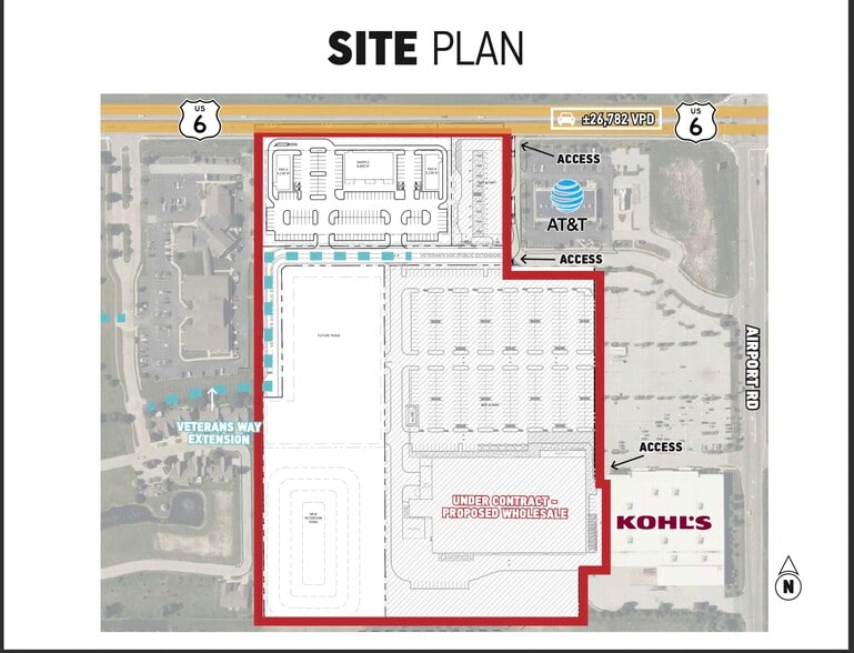 - Prime retail development at a signalized intersection along US Highway 6 with nearly 27,000 vehicles per day.