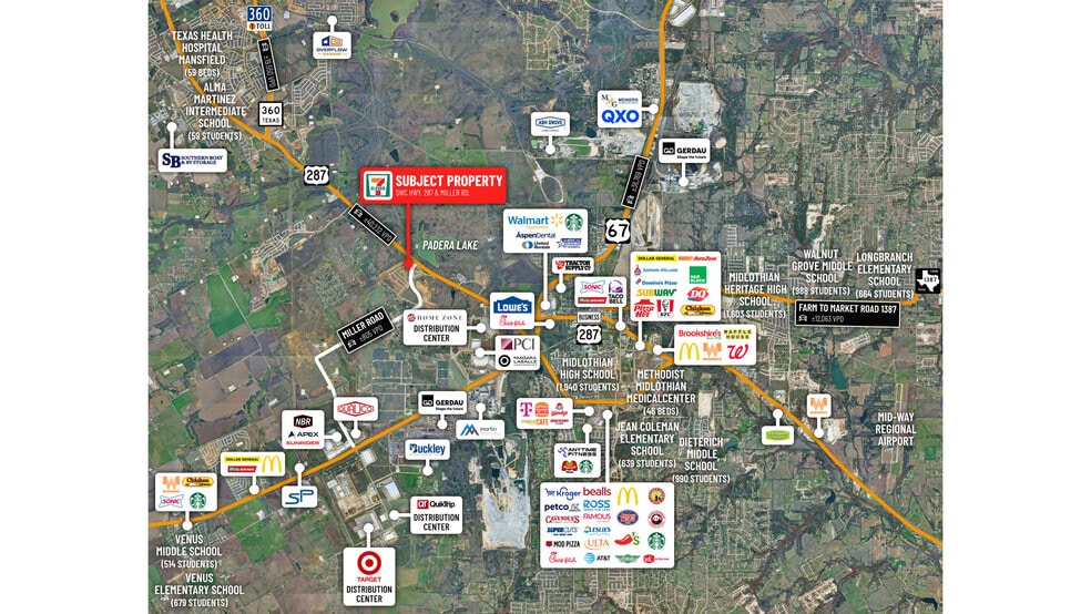 - Signalized Hard Corner At US Highway 287 And Miller Road(24,000+ VPD), Along a Major Ellis County Commuter Corridor