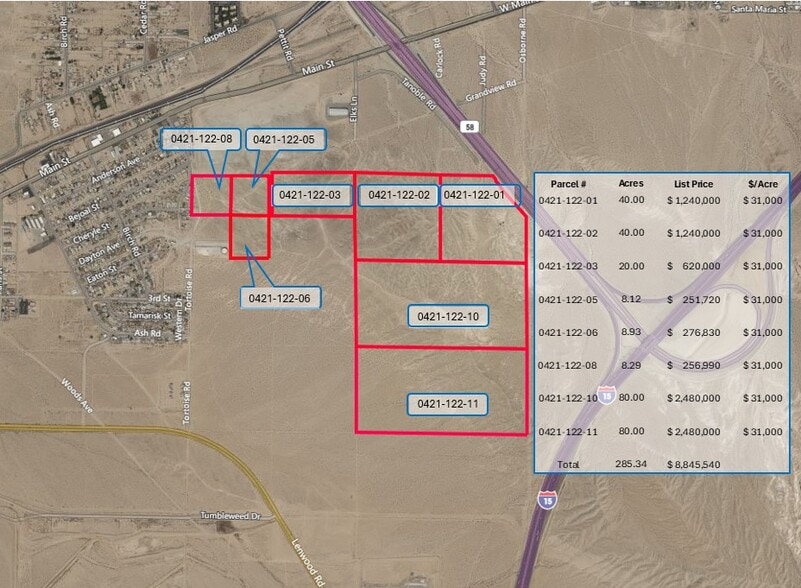 SWC Interstate 15 & Highway 58 - 285.34 ACRES. ONLY 8 PARCELS LEFT! 285.34 Acres of Commercial Land Offered at $12,282,032 CAD in Barstow, CA 92311