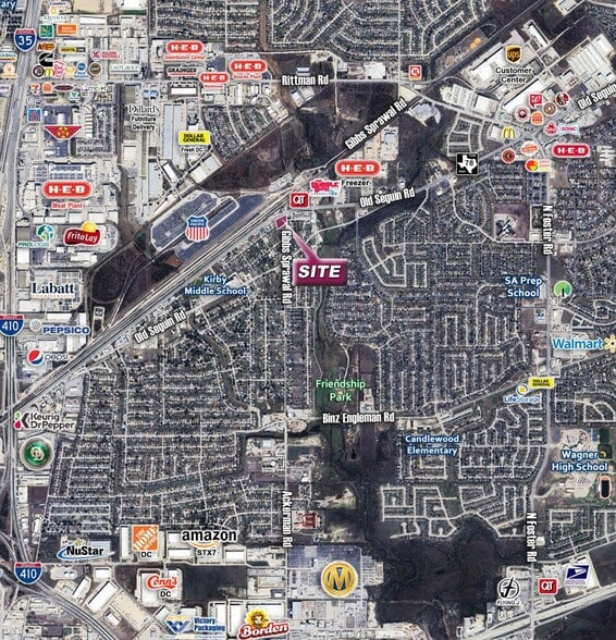The property is located on a hard corner at a signalized intersection. Easy access to Loop 410, I-35 & I-10. Near the Fort Sam Houston and the Union Pacific Railroad.