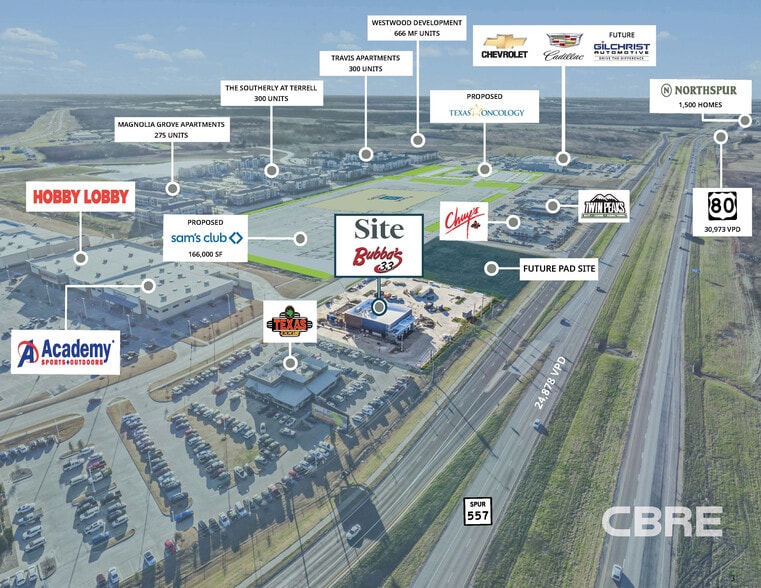 Located within the Crossroads at Terrell – A 300+ acre mixed-use development including 275,000 SF of retail, 900 multi-family units with an additional 665 units approved, 30+ pad sites, and 3 hotels (see page 5 for more information)