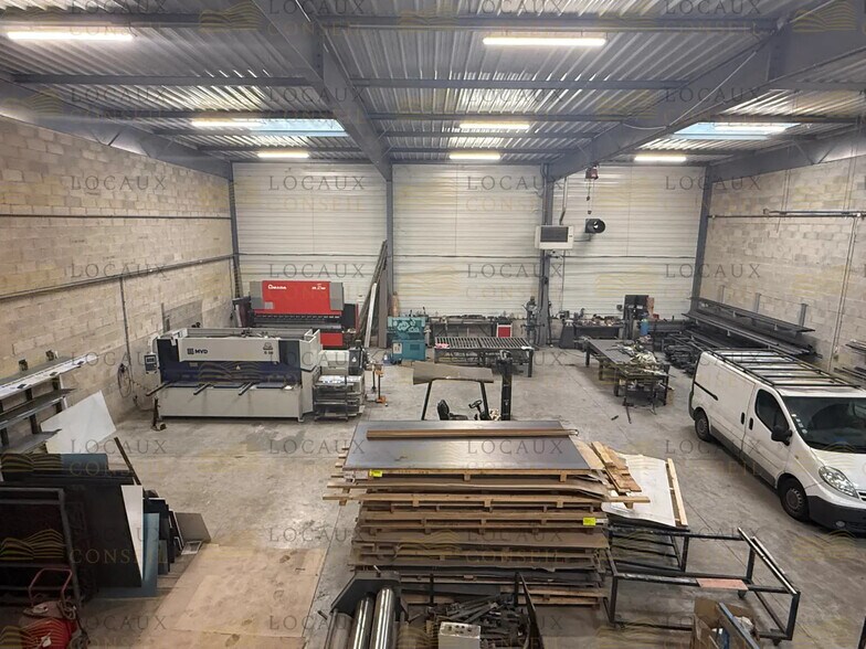 Cet espace d’activités bénéficie d’une hauteur importante permettant d’accueillir aisément diverses opérations industrielles ou artisanales. L’accès est facilité par une porte sectionnelle adaptée aux mouvements de marchandises ainsi qu’une aire de manœuvre permettant le passage de véhicules professionnels. Les bureaux intégrés offrent un environnement fonctionnel pour les tâches administratives, complétés par des équipements techniques tels que la climatisation, le chauffage au gaz et une infrastructure réseau adaptée. Le sol béton et les prestations de sécurité renforcent la polyvalence et la robustesse de cet espace, tandis que les emplacements de stationnement apportent un confort supplémentaire aux utilisateurs.